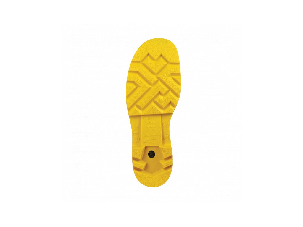 Samočistiaca protišmyková podošva s hodnotením SRA++. Kompozícia PVC zosilnená nitrilom a polymérom pre profesionálnu chemickú ochranu. Certifikovaná chemická odolnosť EN13832-3:2006 JKOPQR