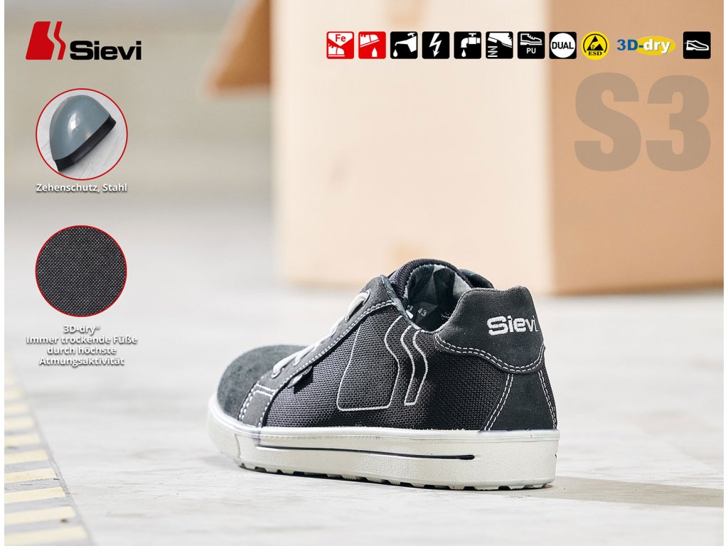 Trendová a pohodlná pracovná obuv v športovom štýle so všetkými ochrannými prvkami bežnej bezpečnostnej obuvi. Má oceľovú špičku a ochranu proti preniknutiu. Podošvy majú vynikajúce priľnavé vlastnosti, ktoré udržia vaše nohy pevne na zemi aj na náročných povrchoch vďaka novému dizajnu a vzoru podrážky. 3D-dry® podšívka a dvojité tlmiace vložky Dual zaručujú maximálne pohodlie.
