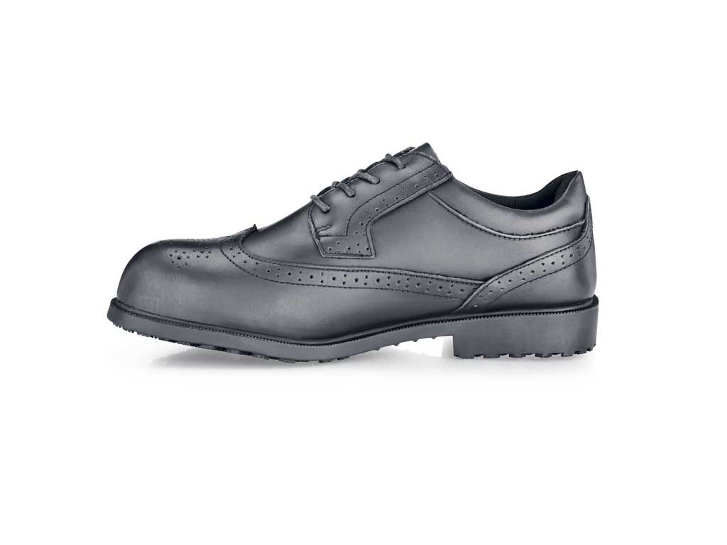 Bezpečnostná obuv Executive Wing Tip spája štýl, bezpečnosť a pohodlie. So špičkovou protišmykovou podrážkou ponúka neprekonateľnú úroveň priľnavosti na rôznych podlahových povrchoch. Odolný kožený zvršok obsahuje oceľovú špičku, ktorá je navrhnutá tak, aby chránila vaše nohy pred nárazmi až do 200 joulov.