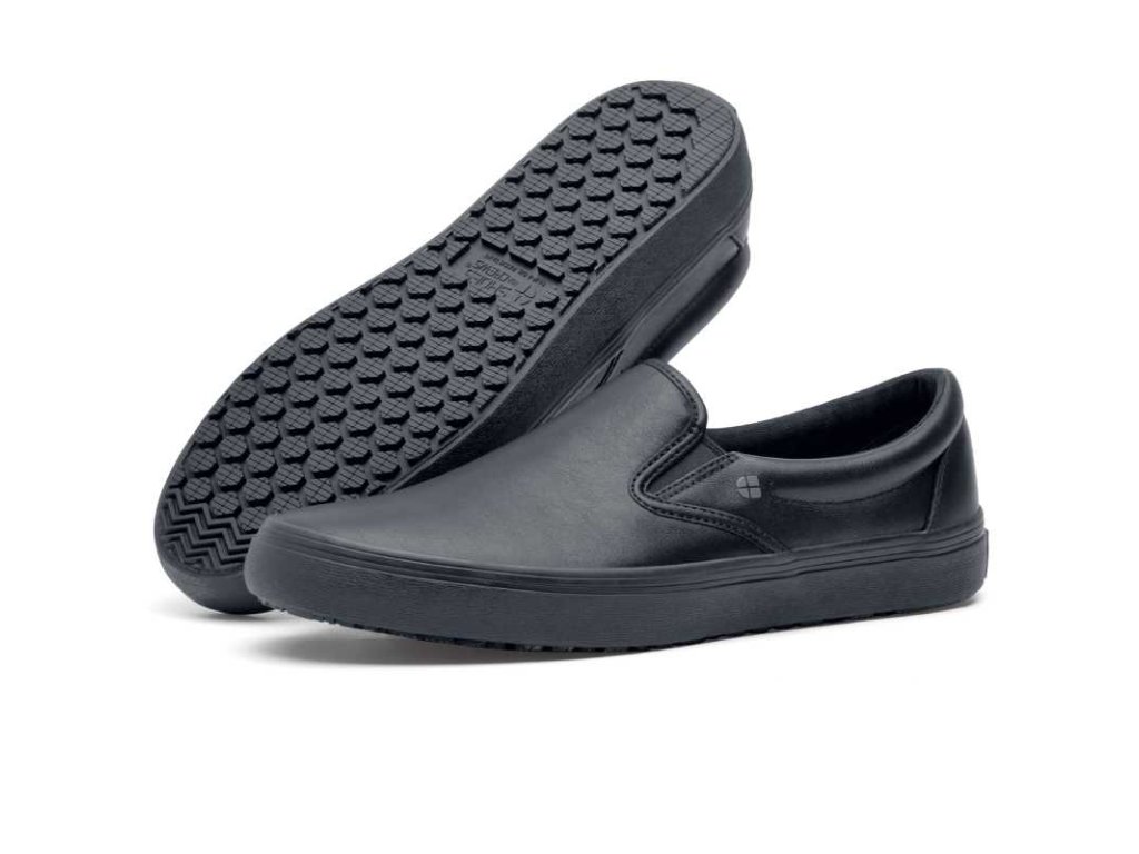 Unisex nazúvacie pracovné topánky Merlin Black majú ľahký dizajn a sú vyrobené z pravej kože špeciálne upravenej tak, aby odpudzovala tekutiny z povrchu. Naše patentované protišmykové podošvy poskytujú vynikajúcu odolnosť proti pošmyknutiu na pracovisku a obsahujú technológiu TripGuard, ktorá vám umožňuje pohybovať sa bez námahy na rôznych podlahových povrchoch.