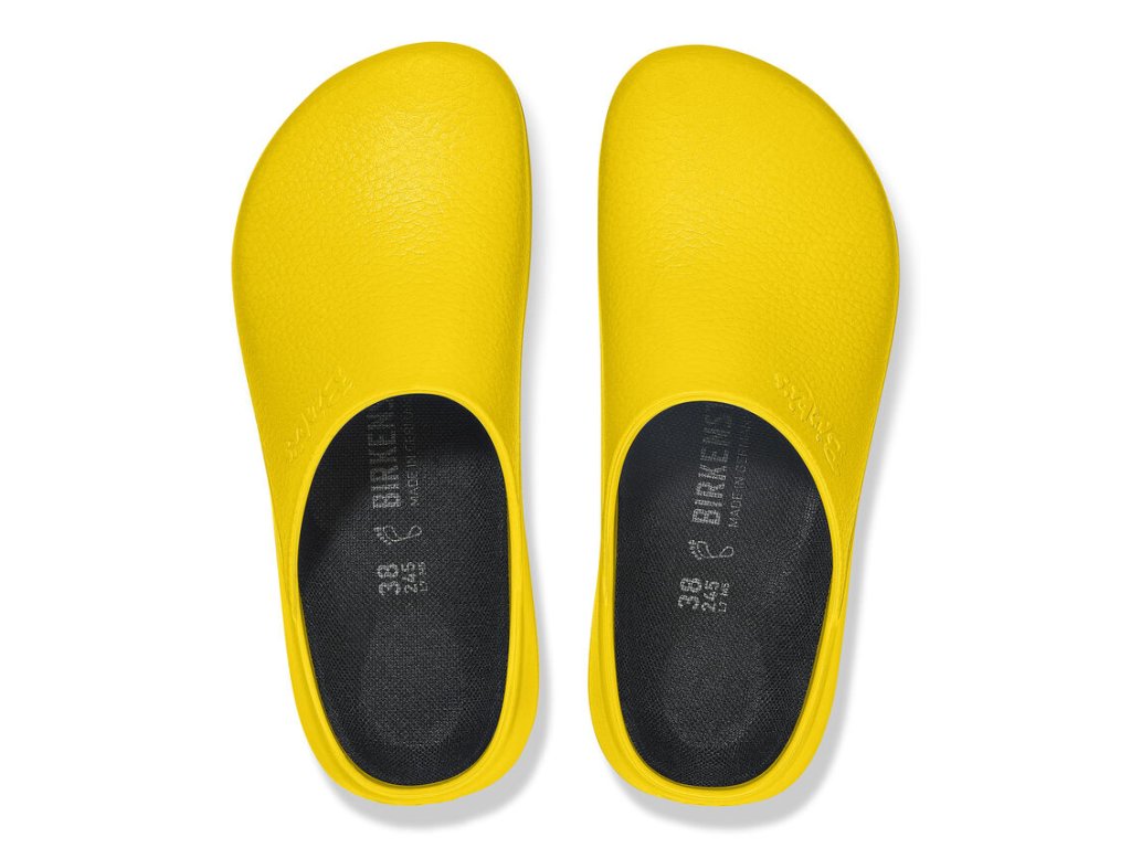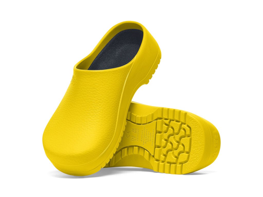 Vďaka širokej škále farieb, v ktorých sú modely Super Birki k dispozícii, sú veľmi univerzálne pre všetky druhy pracovných a súkromných prostredí. Táto kompaktná obuv vyrobená z vodeodolného a nečistoty odpudzujúceho polyuretánu je tiež odolná voči olejom a mastnote. Tento mimoriadne odolný materiál sa dá prať až do 60 °C a dá sa účinne dezinfikovať. Vďaka svojej odolnosti a hygienickým vlastnostiam je ideálny do kuchýň, zdravotníckych zariadení a potravinárskeho priemyslu – pričom môže rovnako poslúžiť aj ako praktický záhradný drevák. Anatomicky tvarovaná korkovo-latexová stielka je podšitá tkaninou odvádzajúcou vlhkosť. Dá sa vybrať pre ľahké čistenie a možno ho prať pri teplote do 30 °C.